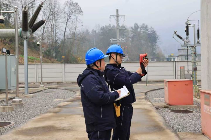 巡查电力设备本报讯(记者 谭鹏 文/图)元旦将至,为保障节日期间电网安全稳定运行,黔江区电力部门运用科技化巡检手段,加强重点设施运维,全面筑牢假期电力“安全网”。濯水镇乌杨社区110千伏GIS智能变电
