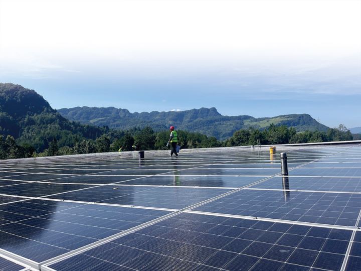 19421 次浏览 08-28已经安装好的光伏板安装光伏板棚顶下的肉牛项目负责人介绍建设情况工作人员检查机房检查光伏板8月26日,走进石家镇鱼田村光伏发电项目基地,工人们正在肉牛养殖场的屋顶安装光伏板,蓝色的光伏板正吸收着金色的阳