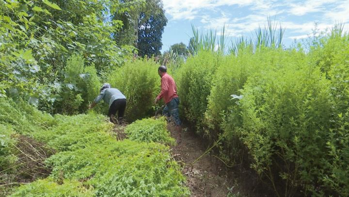 3428 次浏览 08-26春播青蒿种,秋收希望田。近日,黑溪镇三千余亩青蒿陆续成熟,进入集中采收阶段,田间地头处处洋溢着丰收的喜悦。记者走进黑溪镇苏维村的青蒿种植基地,只见连片的青蒿长势喜人,微风拂过,清香四溢。农户们正利用当