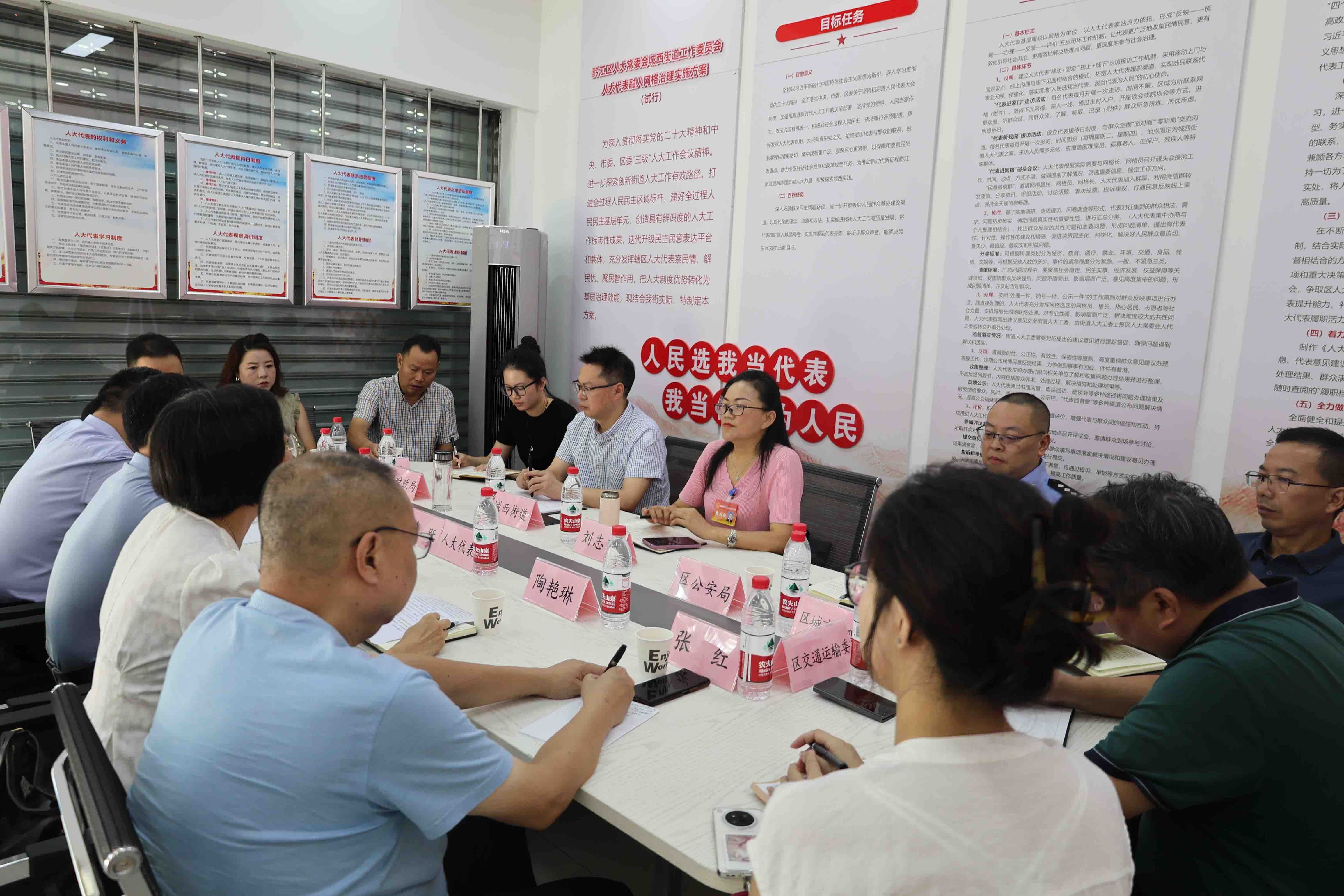 5283 次浏览 10-1610月11日,黔江区人大城西街道工委组织召开“三方议事”会议,协商解决城西街道迎宾社区白家湾公交车站点运行问题。区公安局、区交委、街道办事处相关负责人以及辖区部分人大代表、议事代表、群众代表参加会议。