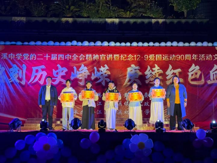 27059 次浏览 12-17活动现场本报讯(记者 王巧西 文/图)为进一步激发广大师生爱国情怀,彰显青年爱国之志,营造良好的校风学风,12月15日晚上,黄溪中学举行纪念“一二·九”运动90周年文艺汇演,全体师生积极参与。活动以“