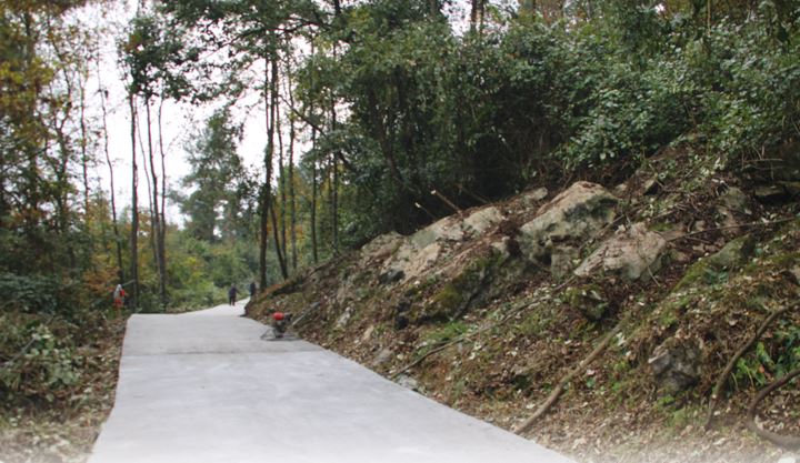 清扫干净后的产业路穿越丛林的产业路产业路伸向远方产业路延伸进院坝要求施工方确保质量村民自发砍伐藤蔓老党员王翠英清扫残枝落叶武陵山深处,喀斯特地貌的石罅间,黔江区濯水镇双龙村的1889名村民,世代与顽石