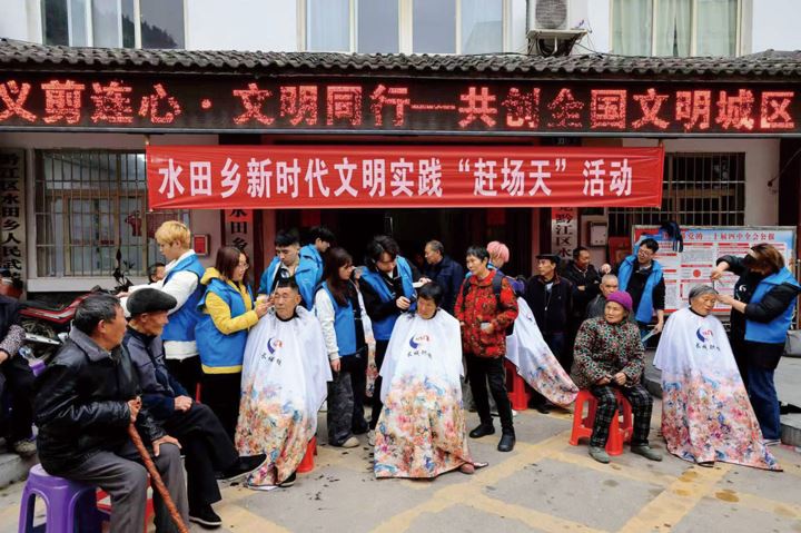 13340 次浏览 12-10本报讯(通讯员 田佳诗 文/图)12月4日,伴随着冬日微风与此起彼伏的吆喝声,黔江区水田乡“赶场天”迎来了一批特殊的摊主——由乡新时代文明实践所组织的文明实践服务队,在此开展“文明新风尚 义剪暖人心”